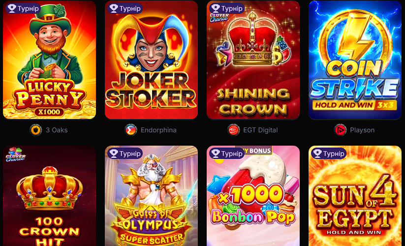 - Бонуси: широкий спектр акцій для новачків і постійних гравців.